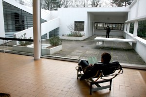 Na sala de estar, o mobiliário desenhados por Le Corbusier, convidam a serem experimentadas, relaxando permite novos pontos de observação do pátio e das copas das árvores do bosque. Cada escolha projectual posiciona o observador em pontos visuais estratégicos. Como exponente máximo, temos as paredes ondulantes da cobertura onde a ausência de matéria (muro) faz emoldura a paisagem sem fim, como uma pintura.